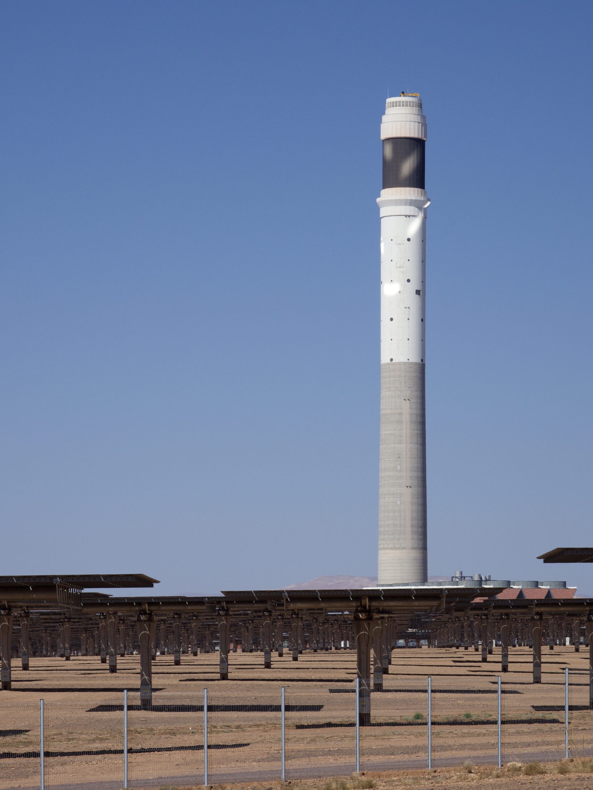 Planta de energía termosolar Noor III, en Ouarzazate (Marruecos) con torre de 250m. Se ha realizado un análisis de determinación de cargas estructurales y la identificación de inestabilidades aeroelásticas de la estructura.