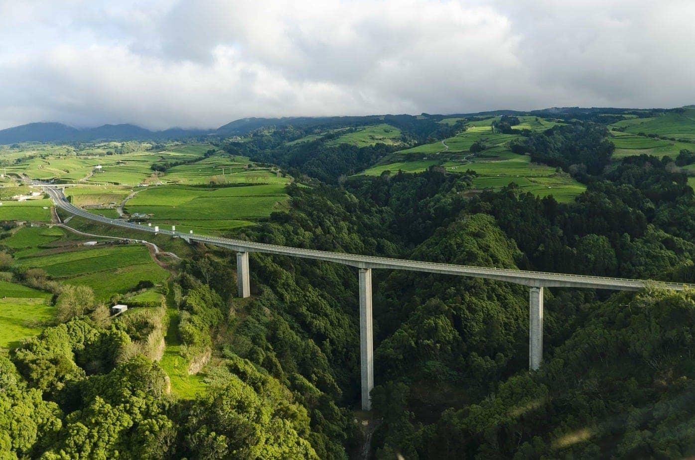Efecto del viento en fase de construcción del viaducto V06 Ribeira das tres voltas, Isla de Azores, Portugal.